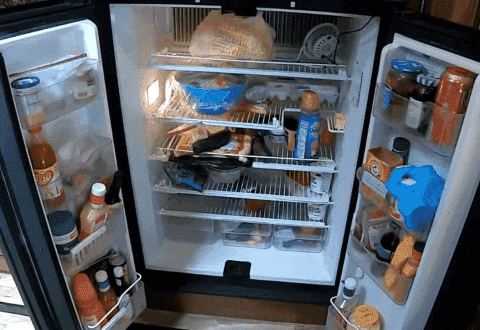 You cannot fit as much food in your RV refrigerator as in your home refrigerator. It would be best to cut down your food supply to ensure everything fits properly, or you’ll have difficulty cooling your fridge.