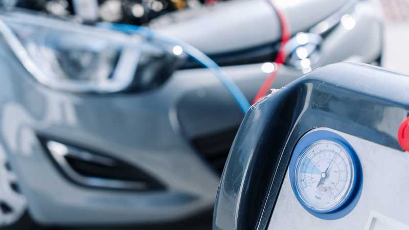 Next, attach a refrigerant pressure gauge to the low-pressure port and turn on the AC. If the pressure is below the manufacturer’s recommended level, you must add refrigerant.